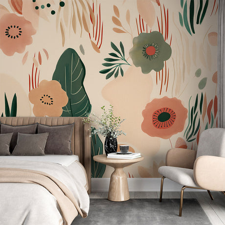 Fra £28.90£33.90Enhedspris /UtilgængeligBlomstret Tapet | Moderne Botanisk Kunst med Terrakotta Blomster