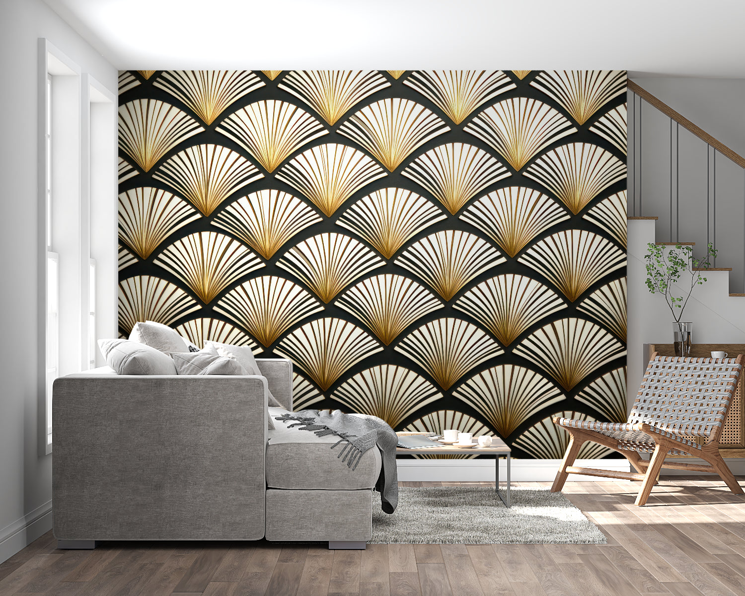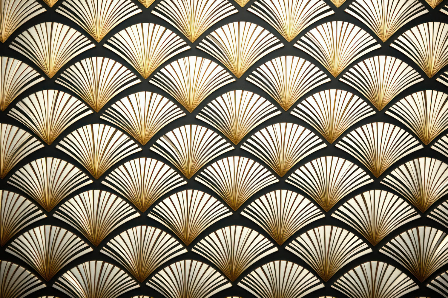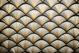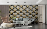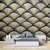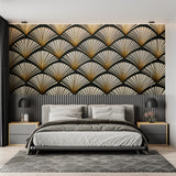 Art Deco Tapet | Guld Fan Mønster på Sort