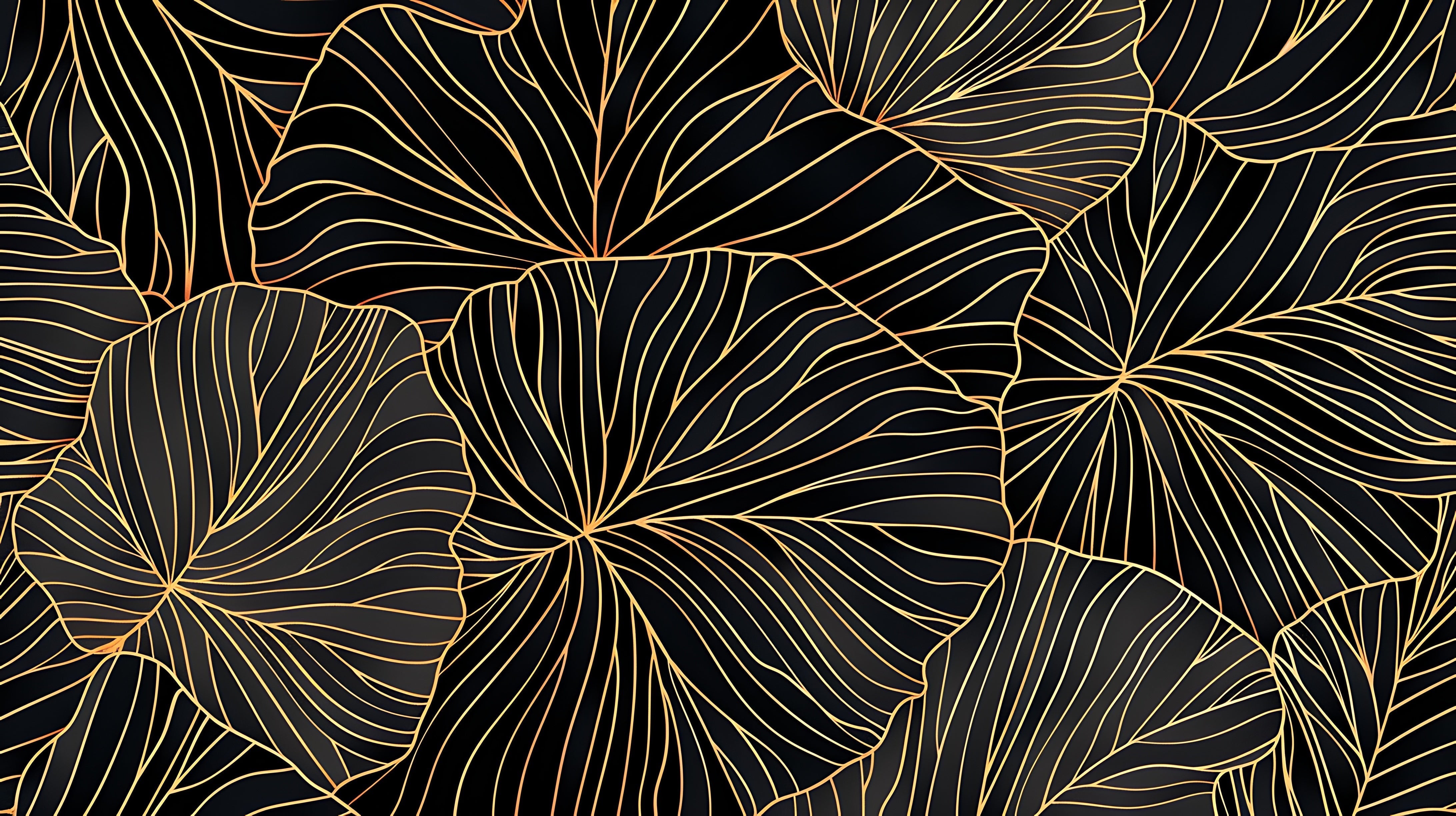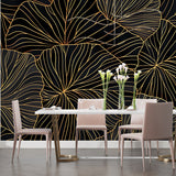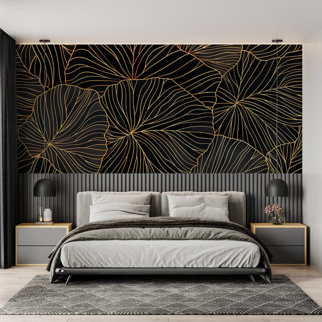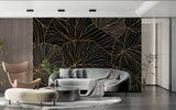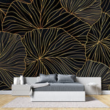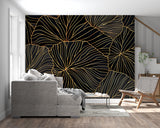 Gold Leaf Pattern Black Backdrop Mural