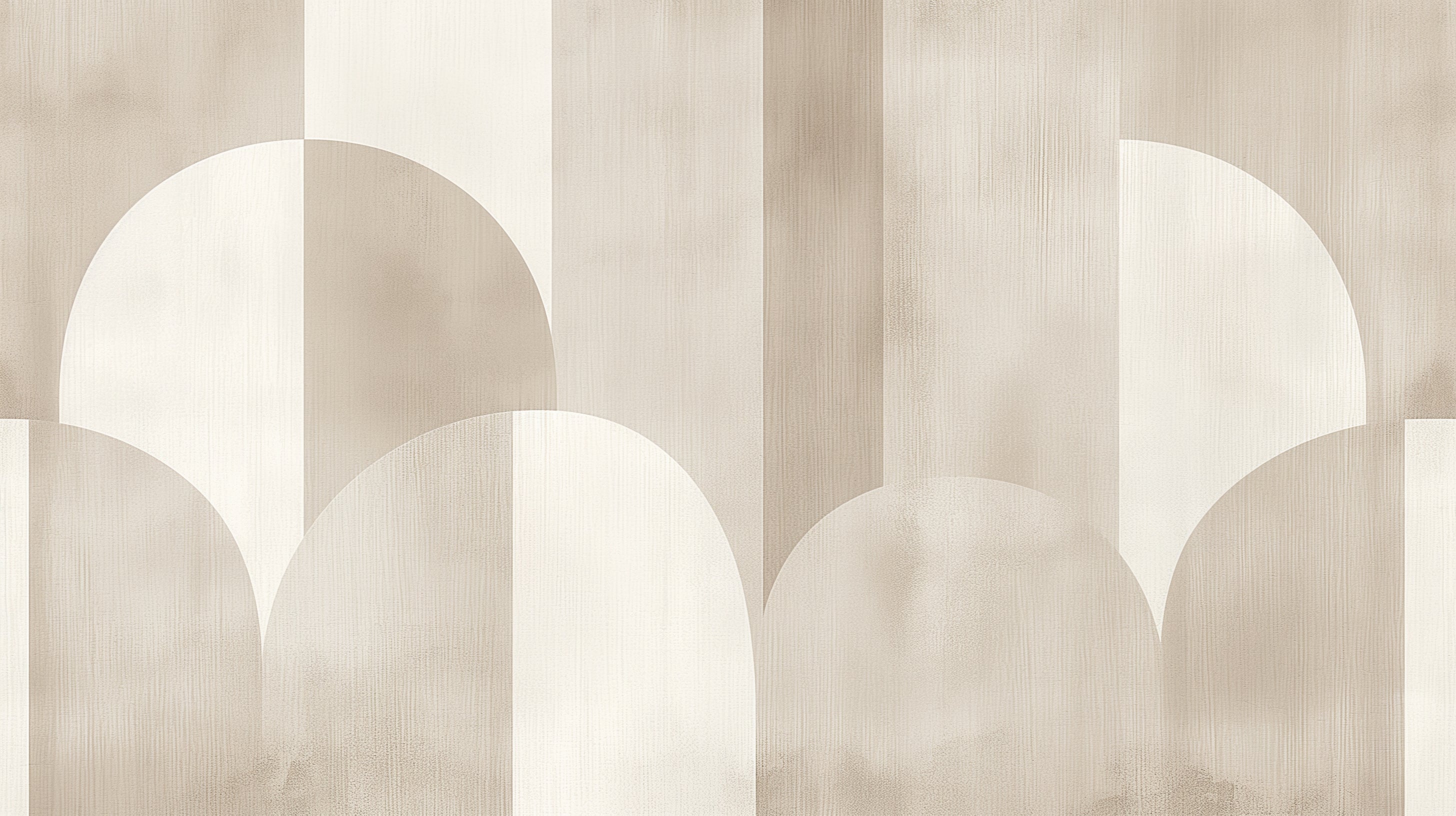 Denne geometriske art deco tapet viser en elegant sammensætning af overlappende buer i harmoniske beige og creme toner. Det sofistikerede design skaber et rytmisk mønster af buede former mod en tekstureret baggrund, mens subtile gradienter mellem formerne tilføjer dimensionel dybde. Det moderne bue tapet kombinerer arkitektonisk præcision med bløde, naturlige nuancer for at skabe en rolig, men iøjnefaldende visuel effekt.