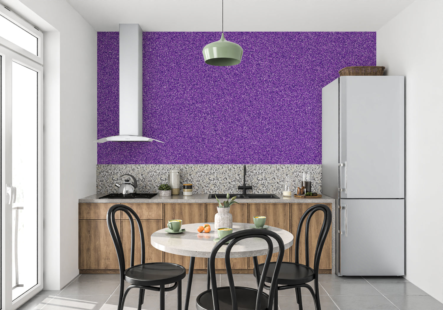 Denne lilla glimmer tapet forvandler ethvert rum med sin fængslende glitreffekt og skaber en atmosfære af raffineret luksus og moderne elegance. Den rige violette base fremhæves af en subtil, men fængslende metallic skinnende tapet finish, der fanger og reflekterer lys hele dagen, hvilket tilføjer dybde og dimension til dine vægge, samtidig med at den opretholder en sofistikeret æstetik.