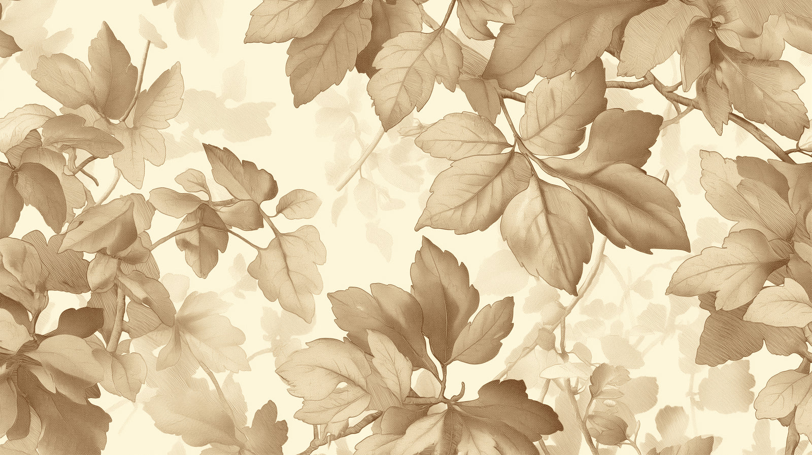 Denne botaniske tapetvæg viser overdimensionerede blade gengivet i sofistikerede sepia-toner, hvilket skaber et fængslende spil af lys og skygge. Den gennemsigtige kvalitet af hvert blad tilføjer en æterisk dimension til designet, mens den varme beige palette skaber dybde gennem delikate gradienter. Det store blad tapet præsenterer en mesterlig balance mellem dramatisk skala og subtil farvning, og tilbyder en kunstnerisk fortolkning af naturlige former.
