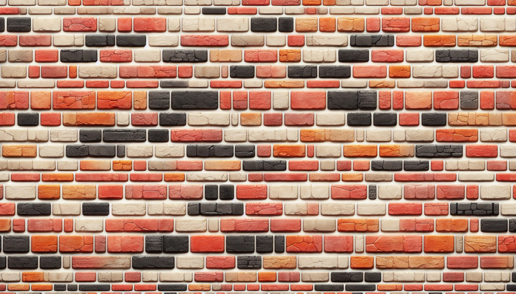 Denne murstensvæg tapet viser en mesterlig blanding af terrakotta, beige og kulfarvede toner i et realistisk murstensmønster. Hver omhyggeligt gengivet mursten har autentiske teksturer og vejrbidte detaljer, hvilket skaber et vintage murstens tapet, der fanger karakteren af traditionelt murerarbejde. Den multi-tonale sammensætning af varme orange, bløde cremetoner og dybe kulfarvede mursten tilføjer dybde og arkitektonisk interesse til designet.