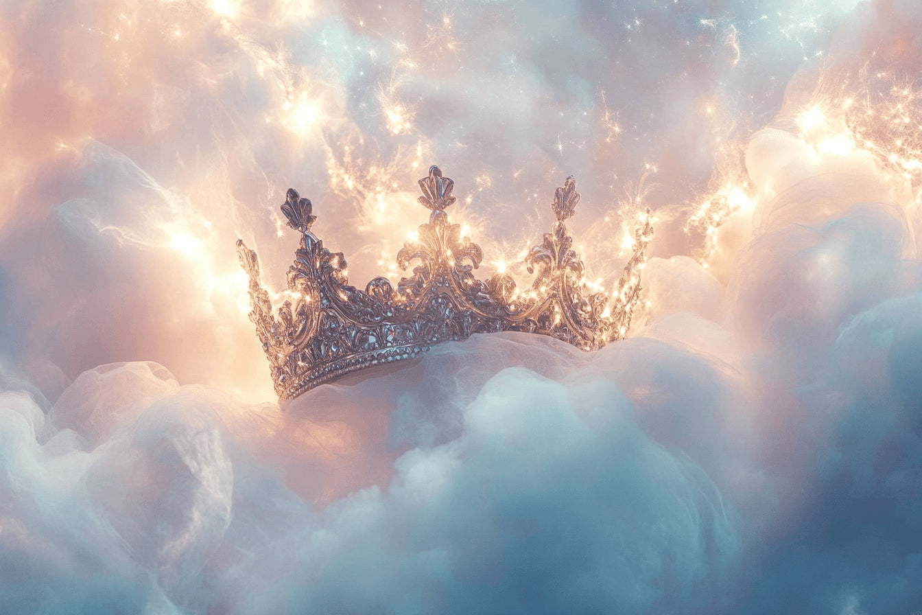 Dette fortryllende prinsesse krone tapet indfanger essensen af kongelig elegance, der svæver midt i en drømmende himmelsk baggrund. En udsmykket gylden krone tager centrum, dens indviklede detaljer skinner mod en fascinerende himmel af bløde lyserøde og turkise skyer. Det delikate metalarbejde i kongelig krone tapet skaber et æterisk fokuspunkt, mens den omgivende tågede atmosfære tilføjer dybde og mystik til kompositionen.