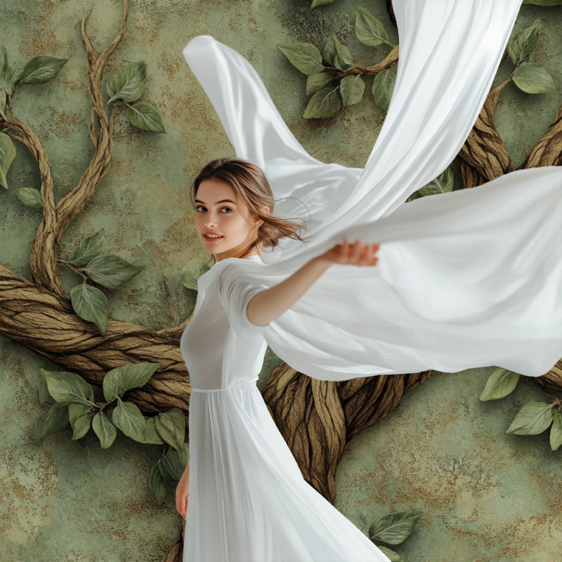 Denne natur vægmaleri viser et fortryllende design af indviklet snoede trægrene mod en salviegrøn tekstureret baggrund. De kunstnerisk gengivne brune vinstokke skaber et fascinerende spiral mønster, mens friske grønne blade tilføjer naturlig vitalitet til kompositionen. Det botaniske tapet har en vidunderligt detaljeret tekstur, der kombinerer rustik charme med sofistikeret kunstneriskhed og skaber en virkelig medrivende visuel oplevelse.