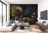 Sort Guld Palmeblade Luksus Mural