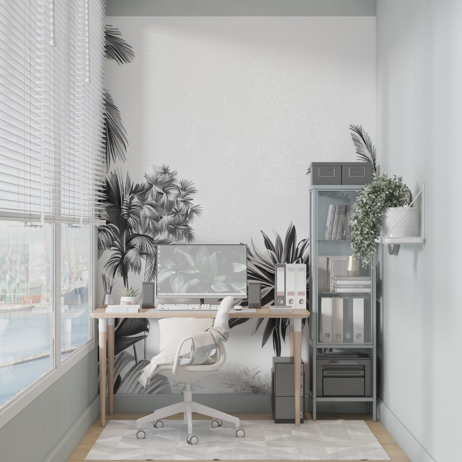 Det botaniske palmeprint fungerer smukt med både moderne og klassisk indretning.