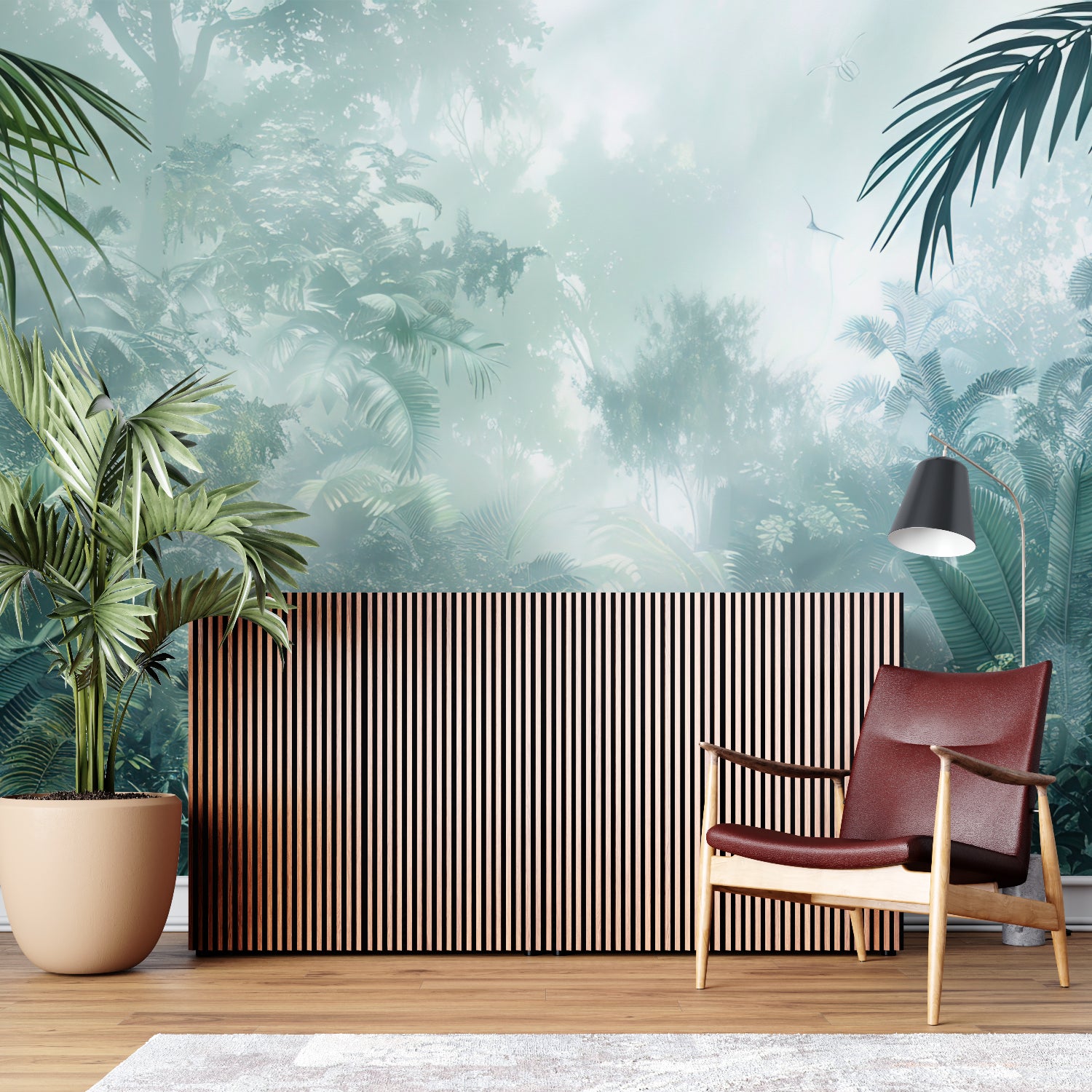 Denne tropiske skovvægmaleri forvandler rum til fredelige helligdomme.