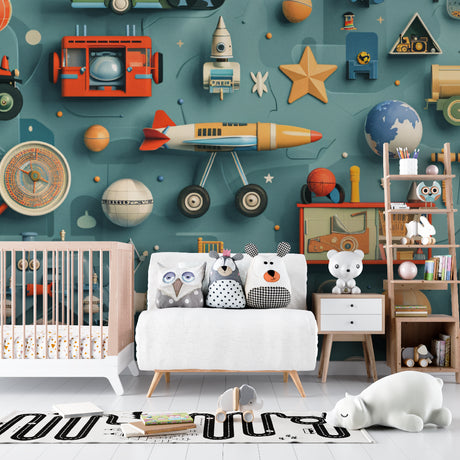 Von £28.90£33.90Stückpreis /Nicht verfügbarKinder Tapete | Vintage 3D Spielzeug und Weltraumthema
