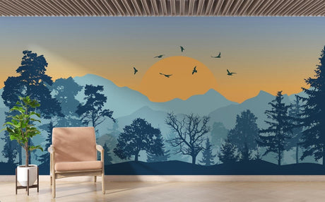 Von £28.90£33.90Stückpreis /Nicht verfügbarBergwald Tapete | Sonnenuntergang Vögel und Kiefern