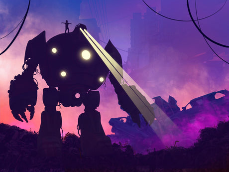 Von £28.90£33.90Stückpreis /Nicht verfügbarSci-Fi Tapete | Riesiger Roboter lila Nachtszene