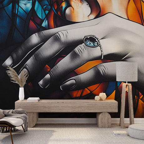 Von £28.90£33.90Stückpreis /Nicht verfügbarArt Deco Tapete | Monochrome Hand mit Buntglasfenster