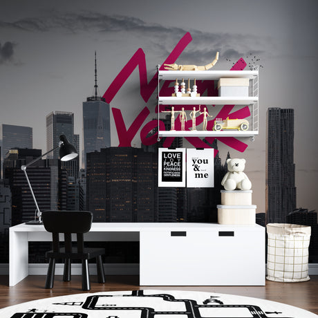 Von £28.90£33.90Stückpreis /Nicht verfügbarStadt Tapete | New Yorker Skyline mit pinkem Graffiti