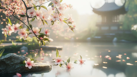 Von £28.90£33.90Stückpreis /Nicht verfügbarKirschblüten Tapete | Japanischer Garten bei Tagesanbruch