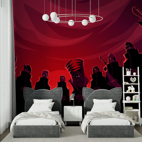 Von £28.90£33.90Stückpreis /Nicht verfügbarAnime Tapete | Dunkle Silhouetten auf rotem Hintergrund