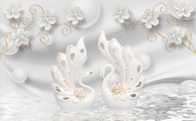 Dieses 3D-Schwan-Tapete öffnet ein traumhaftes Fenster in Ihrem Zimmer.