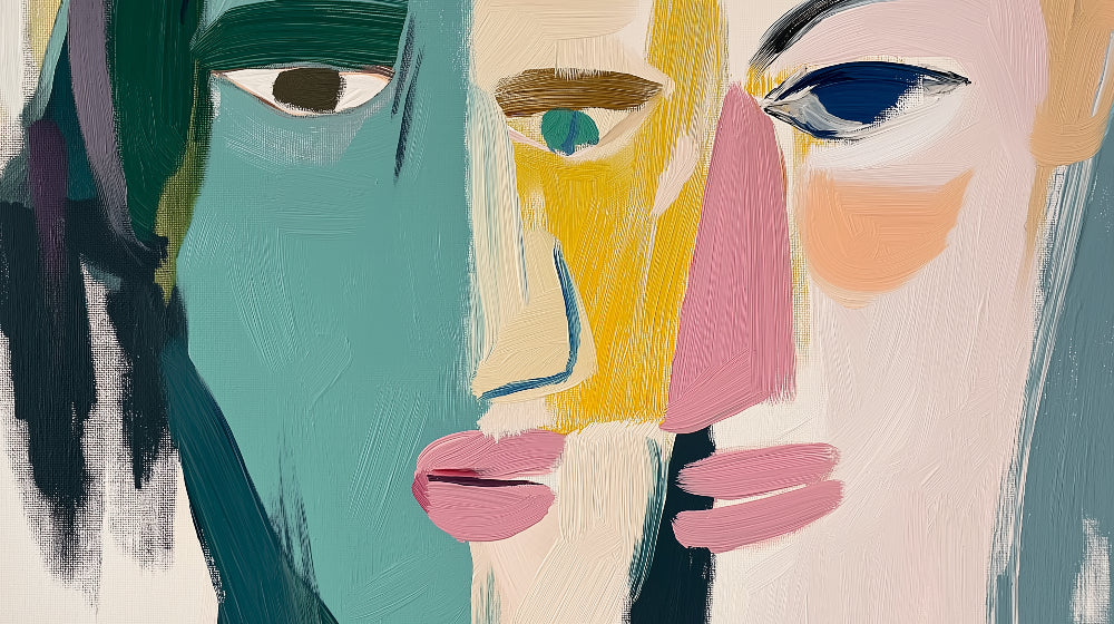 Abstrakte Gesichter Tapete | Künstlerisches Porträt in kräftigen Farben