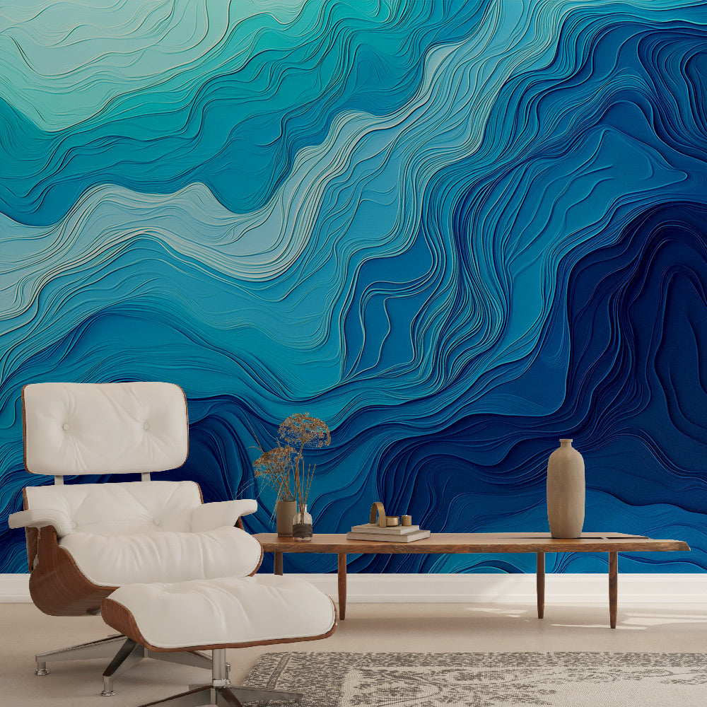 Dieses blaue Wellen-Tapetenmural verleiht Ihrem Raum natürliche Bewegung.