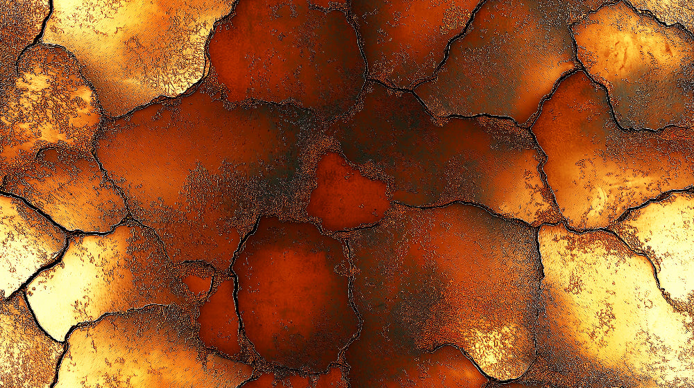 Diese auffällige abstrakte Wandtapete zeigt ein faszinierendes Zusammenspiel von tiefen Bronze- und geschmolzenen Goldtönen, das einen raffinierten Craquelé-Effekt erzeugt, der Aufmerksamkeit erregt. Die strukturierte Oberfläche weist organische Muster auf, die an natürliche Formationen erinnern, mit reichen Terrakotta-Untertönen und metallischen Highlights, die Licht einfangen und reflektieren. Jedes fractalartige Segment dieser metallischen Tapete erzählt seine eigene Geschichte durch unterschiedliche Farbtiefen und komplexe Oberflächendetails.