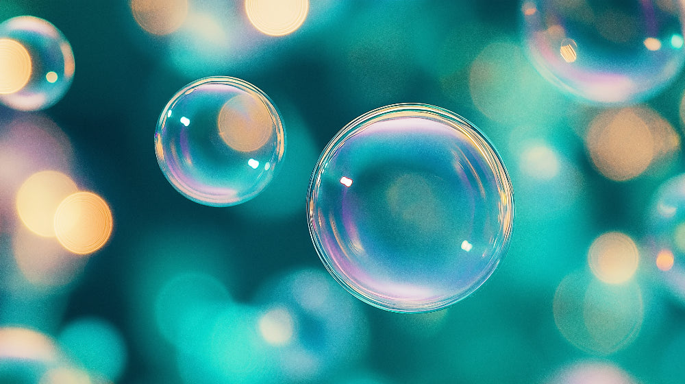 Abstrakte Tapete | Schillernde Blasen auf Türkis