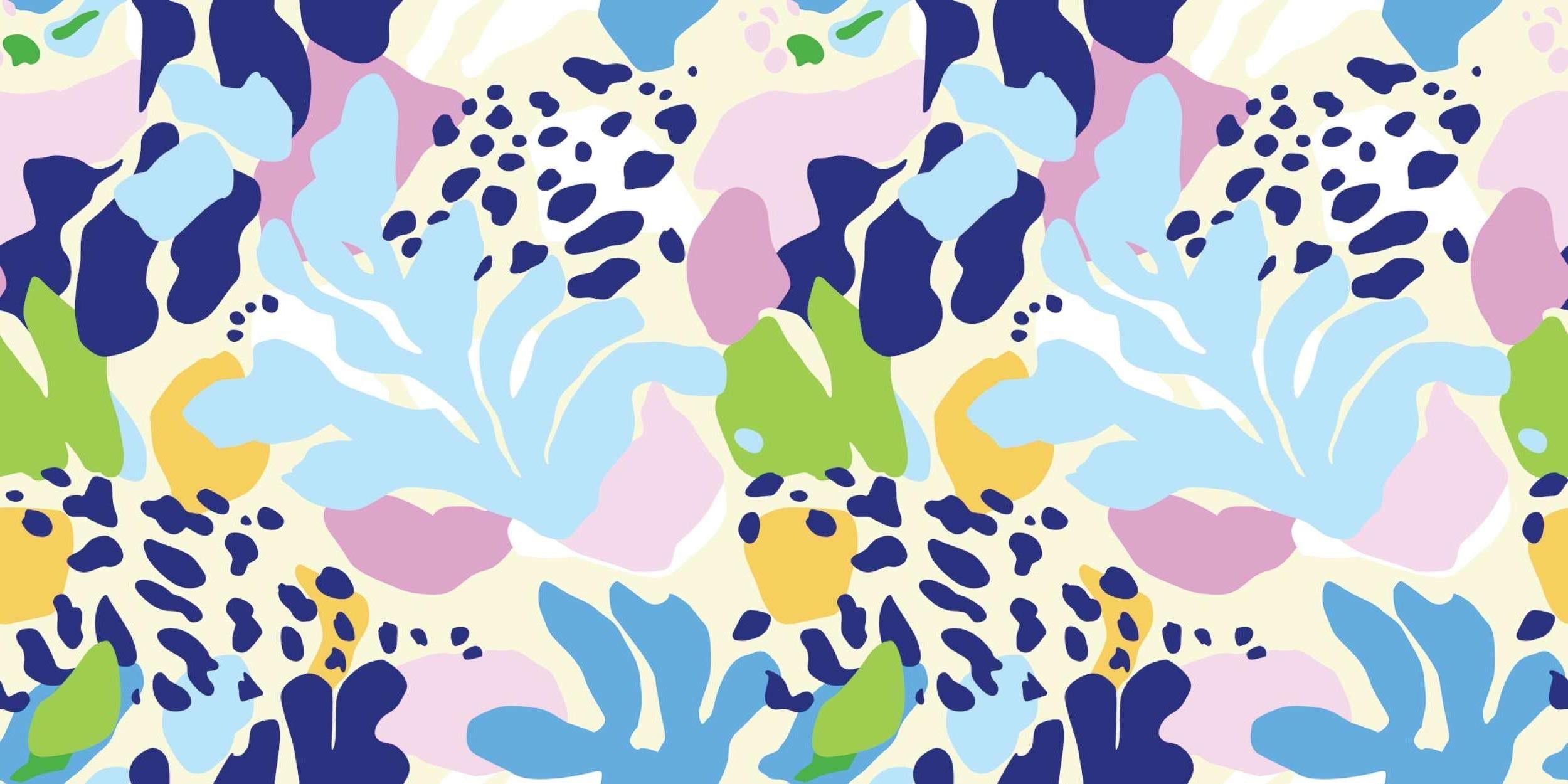 Diese abstrakte Blumen-Tapete präsentiert eine dynamische Verschmelzung organischer Formen und zeitgenössischer Farbblockierung. Lichtdurchflutete Kompositionen aus Marineblau, zartem Rosa und Himmelblau tanzen über einen cremefarbenen Hintergrund und schaffen einen anspruchsvollen, aber verspielten visuellen Rhythmus. Spritzer von Frühlingsgrün und Goldgelb setzen lebendige Akzente auf dieser modernen abstrakten Tapete, während fließende, botanisch inspirierte Formen ein Gefühl von natürlicher Bewegung und Anmut hervorrufen.