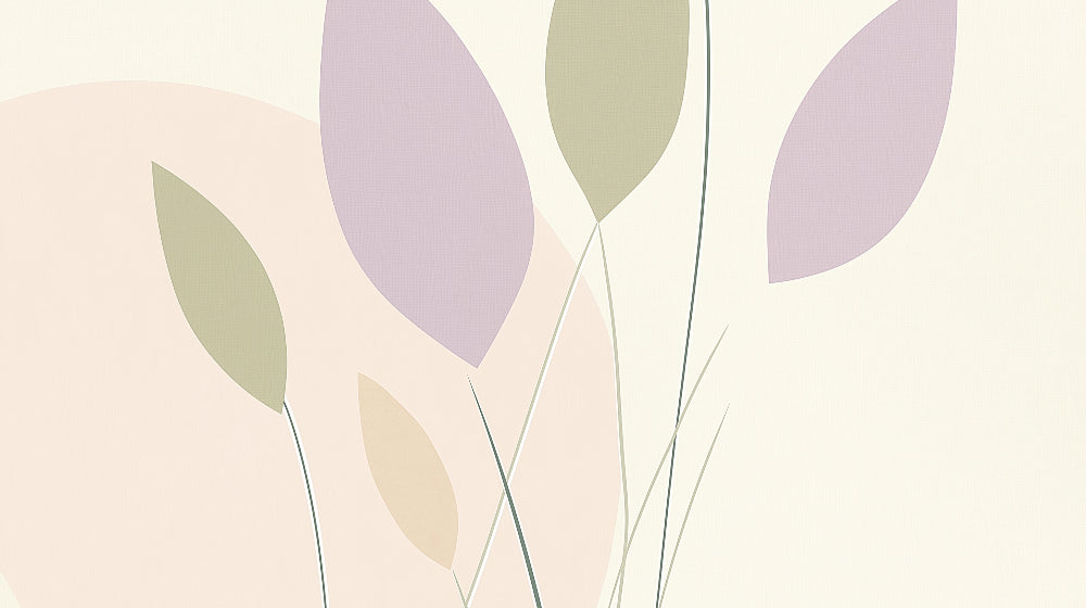Diese abstrakte Blättertapete zeigt eine elegante Komposition übergroßer botanischer Formen in einer raffinierten Pastellpalette. Sanfte Flieder- und Salbeigrüne Blätter schweben anmutig vor einem warmen Cremehintergrund und erzeugen ein Gefühl von ätherischer Bewegung und Tiefe. Das minimalistische Blättermuster demonstriert ein meisterhaftes Gleichgewicht zwischen organischen Formen und zeitgenössischem Design, bei dem jedes Element in perfekter Harmonie zu tanzen scheint.