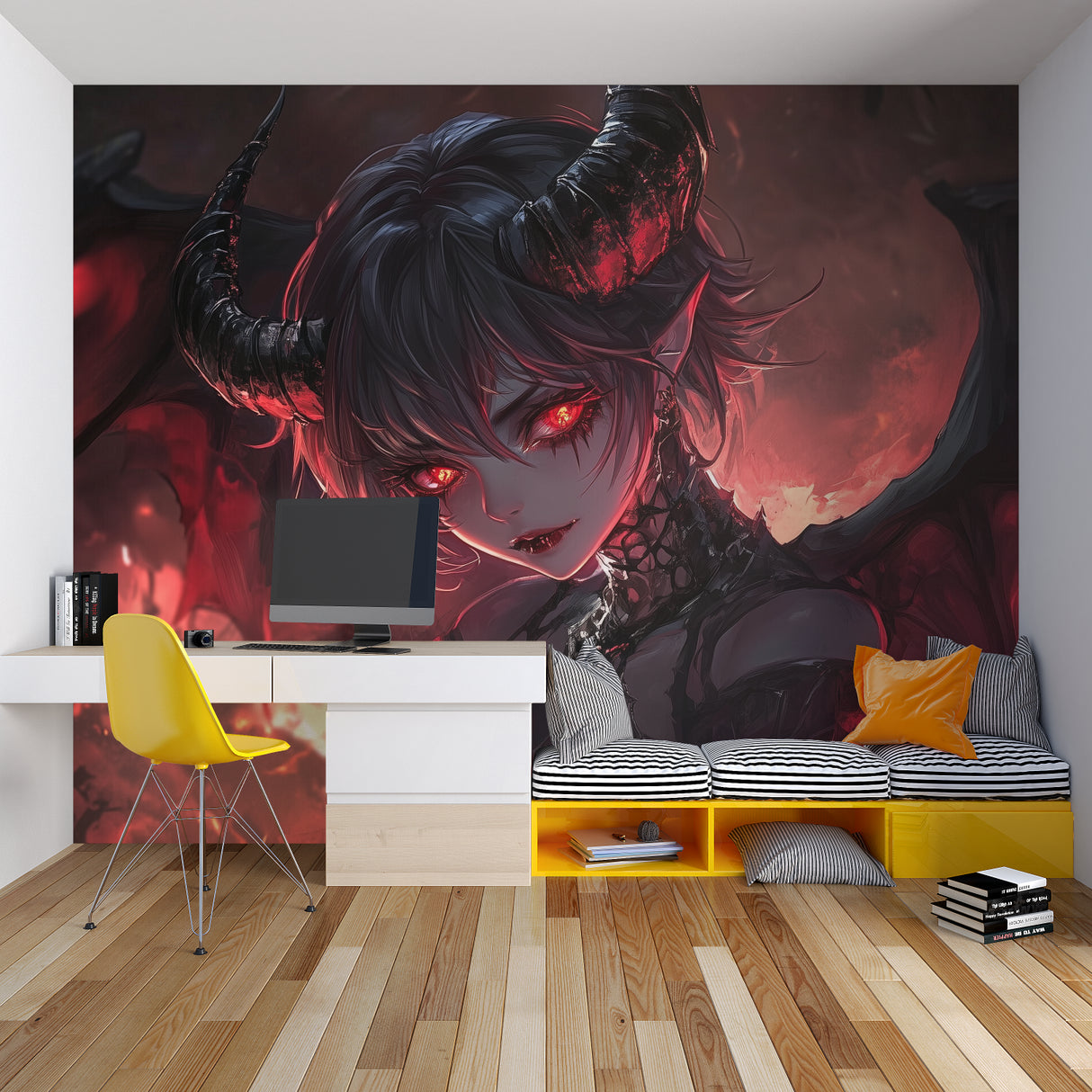 Verwandeln Sie Ihren Raum mit dieser dunklen Fantasie-Tapete, die jedem Zimmer eine intensive künstlerische Präsenz verleiht. Das gotische Anime-Mural setzt ein mutiges Statement, das besonders in Spielzimmern, Jugendzimmern oder kreativen Räumen Anklang findet. Sein reichhaltiges Farbschema und die dynamischen Designelemente arbeiten zusammen, um eine immersive Umgebung zu schaffen, die die Fantasie anregt und Ihrem Interieur eine unverwechselbare zeitgenössische Note verleiht.