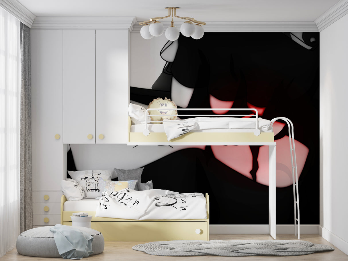 Verwandeln Sie jeden Raum in einen Ausdruck moderner Popkultur mit dieser japanischen Anime-Tapete. Das großformatige Design funktioniert besonders gut in Jugendzimmern oder Gaming-Bereichen, wo es eine immersive Atmosphäre schafft, die die zeitgenössische Kultur feiert. Das schwarz-rote Wandmural dient sowohl als dramatischer Blickfang als auch als Gesprächsanlass, perfekt für alle, die eine mutige Designaussage in ihrem Innenraum machen möchten.