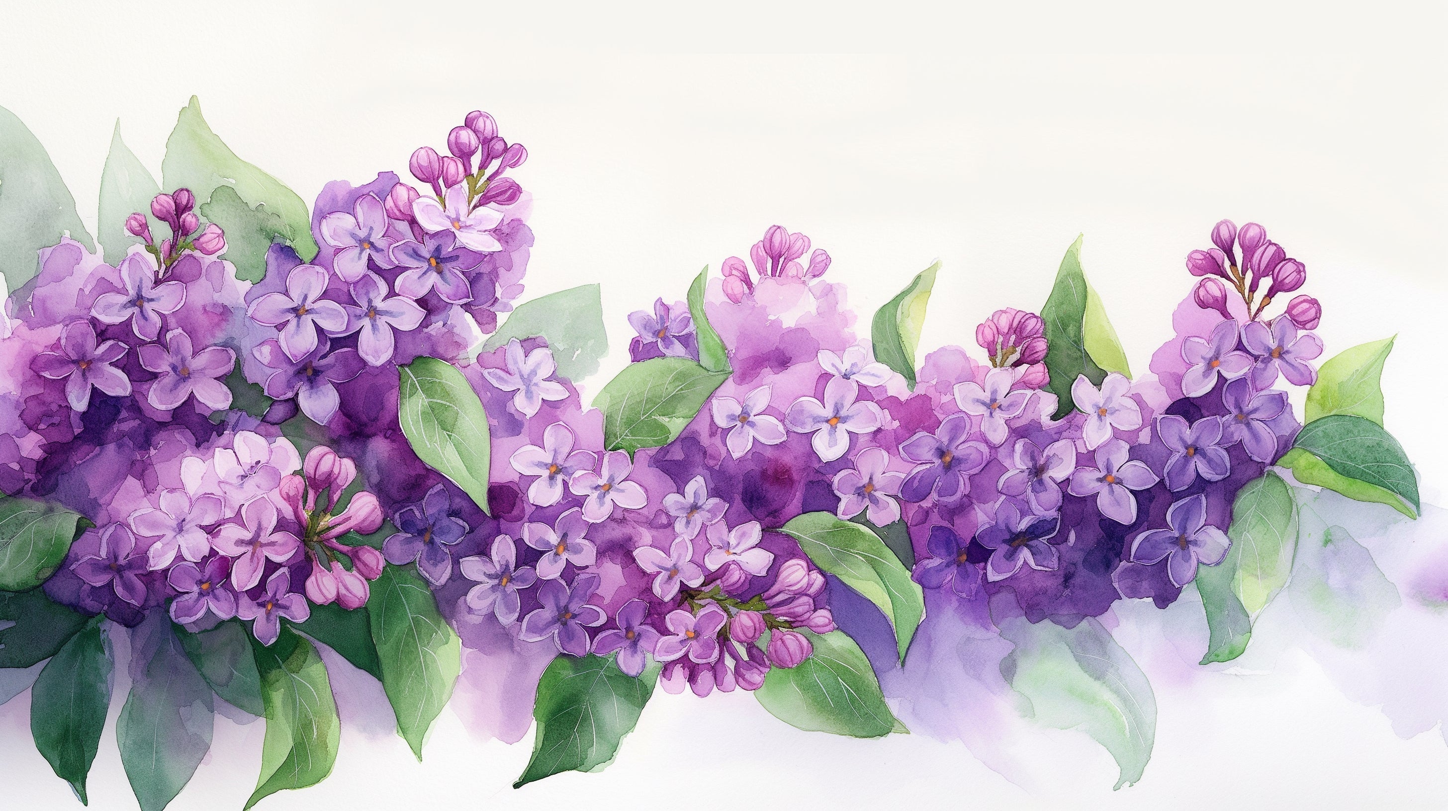 Diese fliederfarbene Blumen-Tapete fängt die ätherische Schönheit der Frühlingsblüten in exquisiten Aquarelldetails ein. Reichhaltige lila Fliederbüschel erstrecken sich über die Wand, ihre zarten fünfblättrigen Blumen in verschiedenen Schattierungen von tiefem Violett bis zu sanftem Lavendel dargestellt. Frische grüne Blätter sorgen für natürlichen Kontrast und verleihen dieser lila Blumen-Tapete Tiefe, wodurch eine anmutige botanische Komposition entsteht, die vor dem makellosen weißen Hintergrund zu schweben scheint.