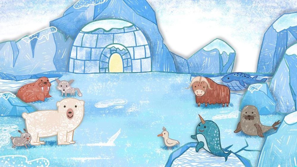 Arktische Tapete | Verspielte Tiere und Iglu-Szene