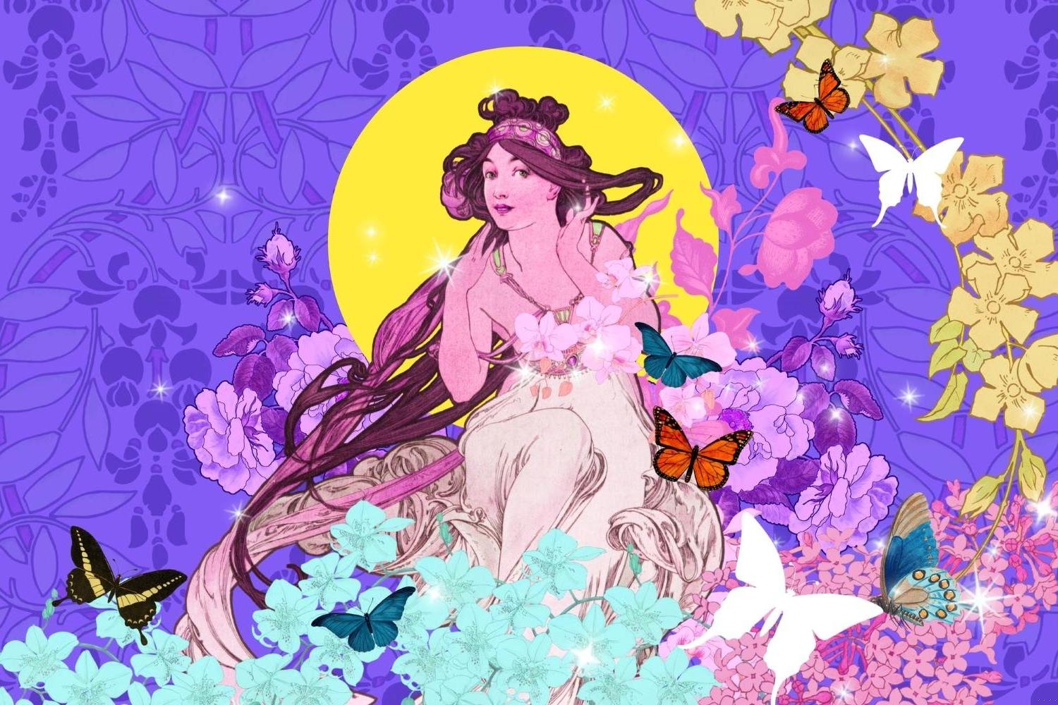 Dieses Jugendstil-Schmetterlings-Wandbild verwandelt Räume mit eleganten Fantasievibes.