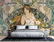 Jugendstil Tapete | Florale Göttin mit Vogelmotiv