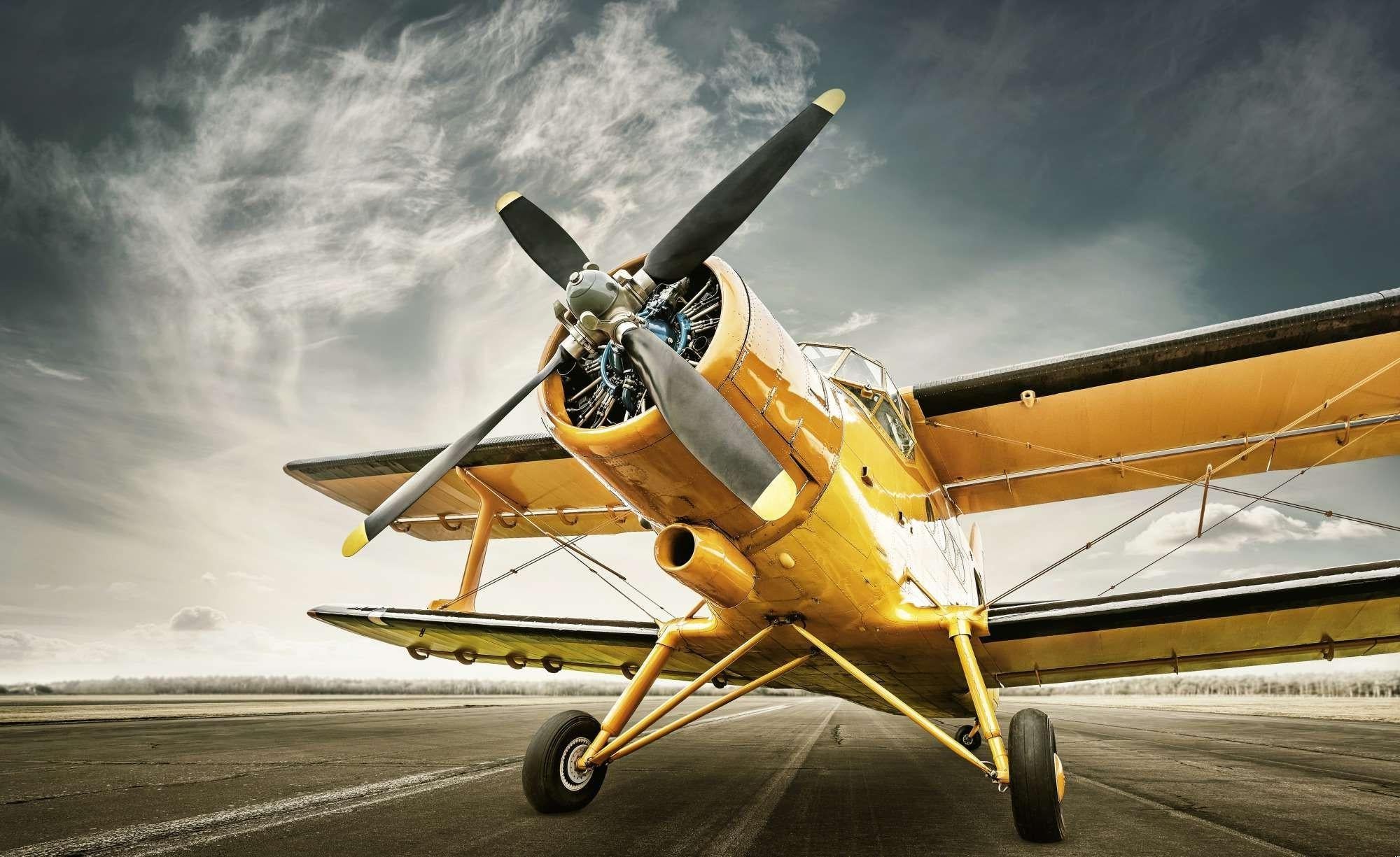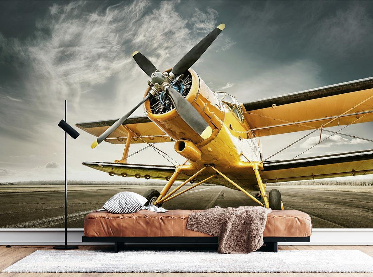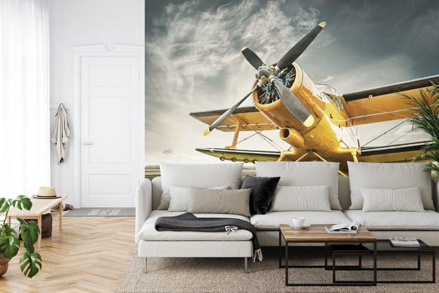 Aviation Tapete | Vintage Gelbes Flugzeug Design