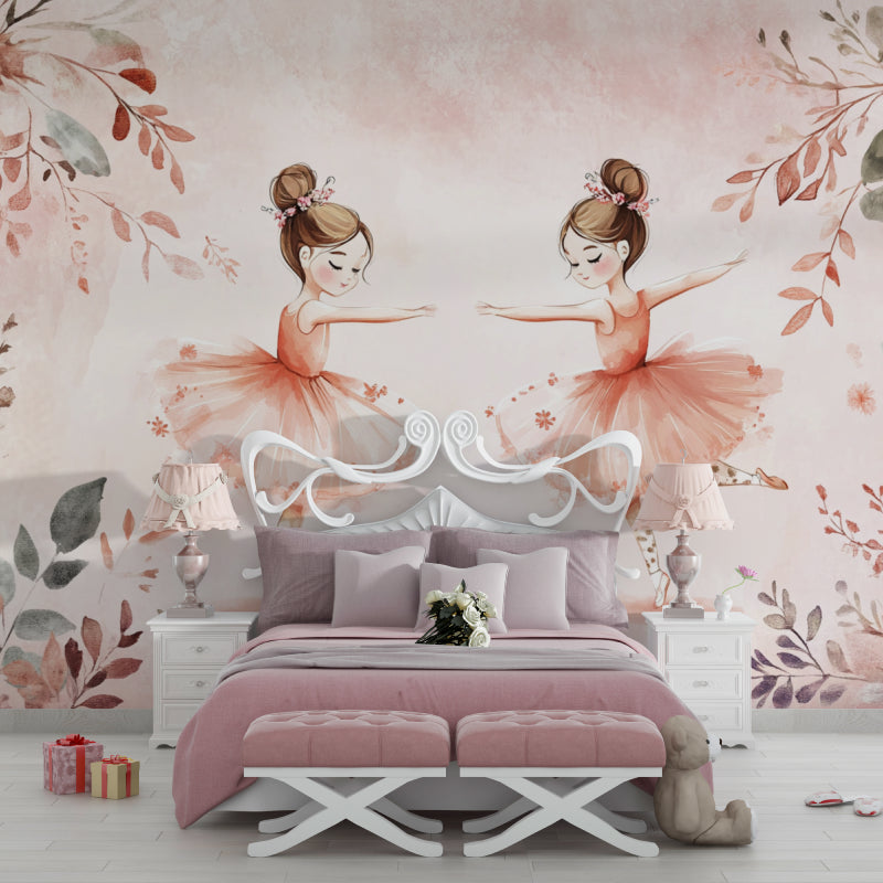 Verwandeln Sie jeden Raum in eine Feier von Anmut und Schönheit mit dieser Tanz-Wandbildtapete. Ob im Kinderzimmer oder Tanzstudio, dieses Ballerina-Wanddesign erfüllt den Raum mit künstlerischem Ausdruck und weiblichem Charme. Die sanfte Farbpalette aus zartem Rosa und gedämpftem Grün schafft eine ruhige Umgebung, die Kreativität inspiriert und Träume von anmutiger Bewegung und künstlerischem Ausdruck nährt.