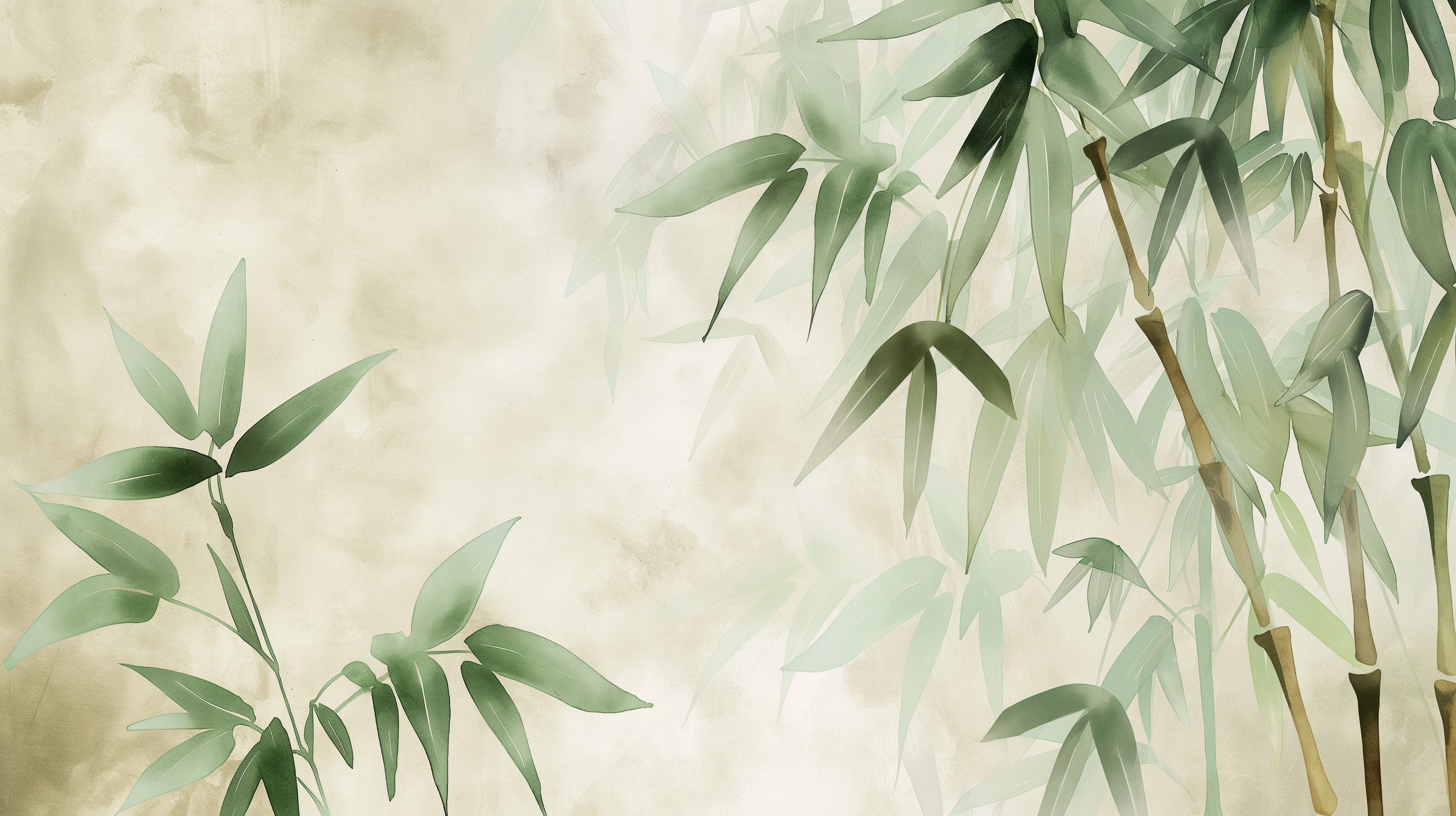 Diese Bambusblatt-Tapete schafft ein ruhiges Refugium mit ihrer ätherischen Komposition aus jadegrünen Bambusblättern, die vor einem sanften beigen Hintergrund tanzen. Das zarte Zusammenspiel von Licht und Schatten erweckt jedes Blatt zum Leben, während die minimalistische Anordnung das Wesen der traditionellen japanischen Bambuskunst einfängt. Die sanften Farbverläufe und die durchscheinende Qualität der Blätter erzeugen eine atmosphärische Tiefe, die jede Wand in eine lebendige Leinwand verwandelt.