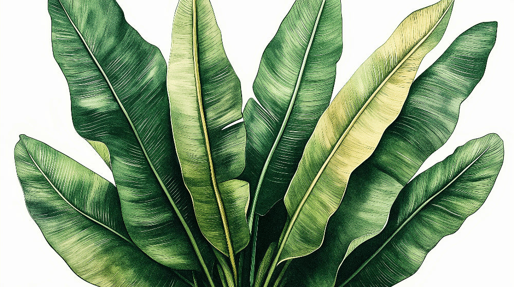 Diese tropische Bananenblatt-Tapete zeigt prächtige, übergroße Blätter in satten, dimensionalen Grüntönen vor einem klaren weißen Hintergrund. Jedes Blatt ist sorgfältig detailliert und zeigt natürliche Variationen von tiefem Smaragd bis zu sanftem Chartreuse, was ein mutiges, aber dennoch elegantes botanisches Wandbild schafft. Die präzise Darstellung der charakteristischen Rippen und natürlichen Kurven der Bananenblätter verleiht diesem auffälligen Design eine künstlerische, fast fotografische Qualität.