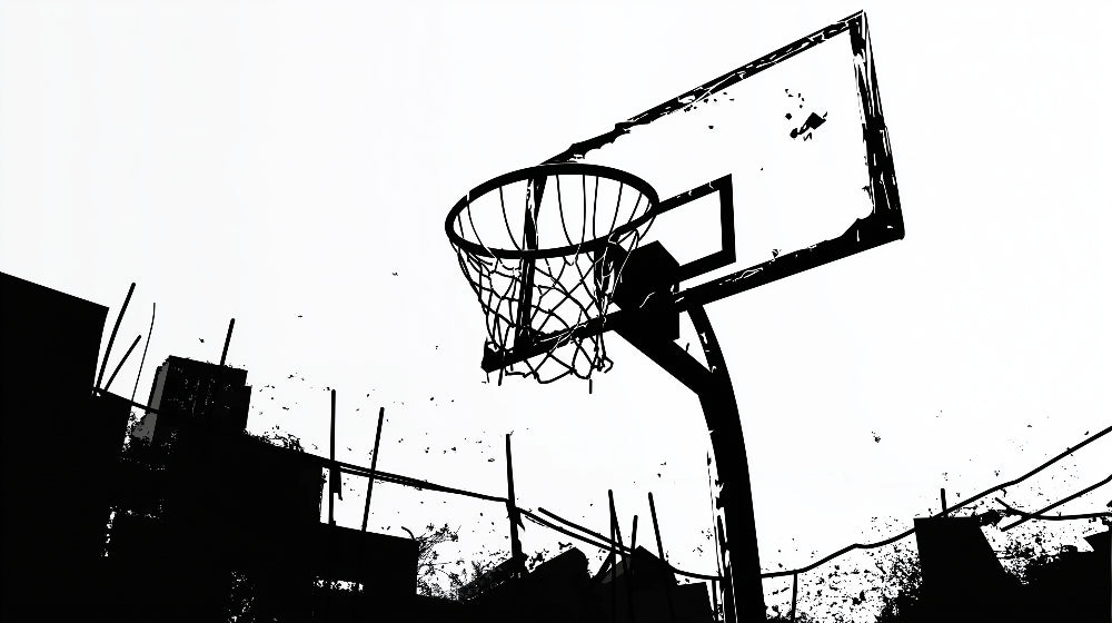 Dieses auffällige Basketball-Wandbild fängt die rohe Energie des Streetbasketballs durch eine meisterhafte monochrome Komposition ein. Die kühne Silhouette des Basketballkorbs hebt sich vor einem sauberen weißen Hintergrund ab, während subtile Grunge-Texturen und urbane Elemente Tiefe und Authentizität schaffen. Die künstlerische Interpretation verleiht ein kantiges, zeitgenössisches Gefühl, das traditionelle Sportbilder durch sein minimalistisches Schwarz-Weiß-Design übertrifft.