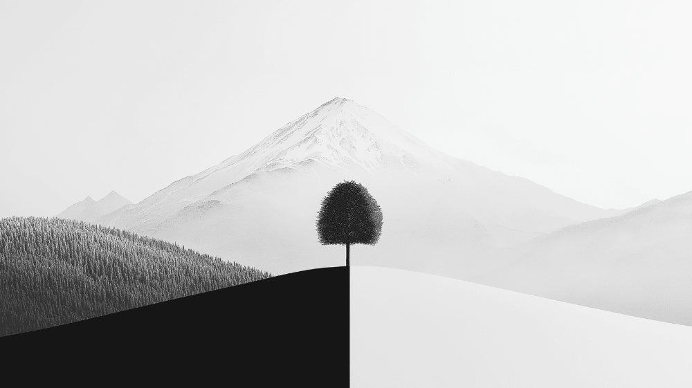 Berg Tapete | Minimalistische Schwarz-Weiß Baumlandschaft