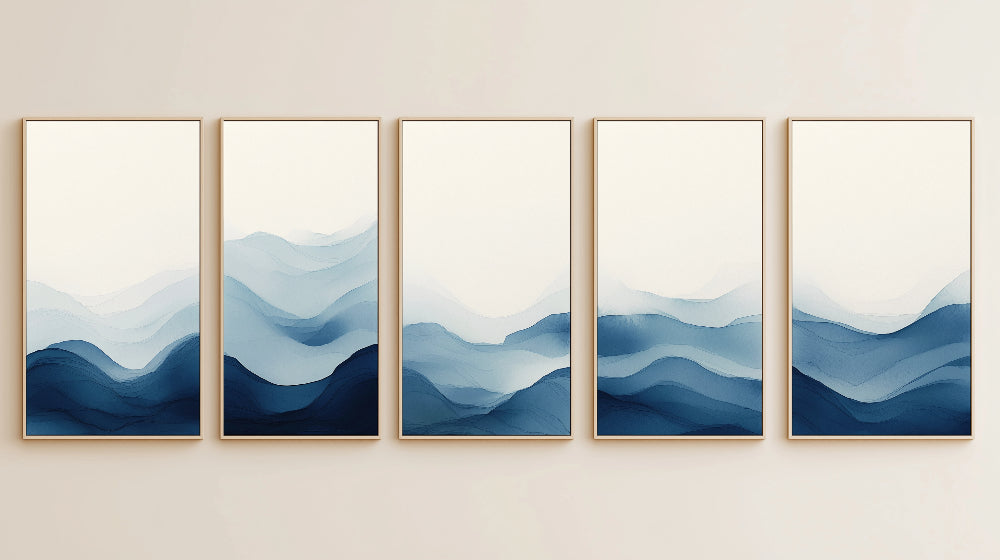 Die fließenden Blautöne und sanften Gipfel schaffen in jedem Raum eine traumhafte Atmosphäre.
