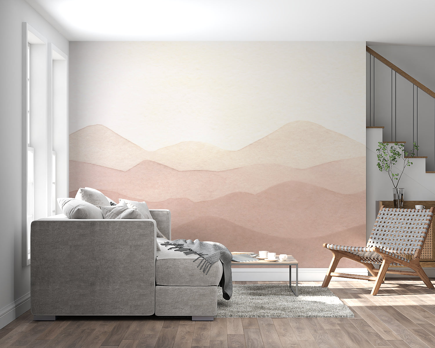 Dieses minimalistische Bergtapeten-Design bringt friedliche Stimmung in Ihren Raum.