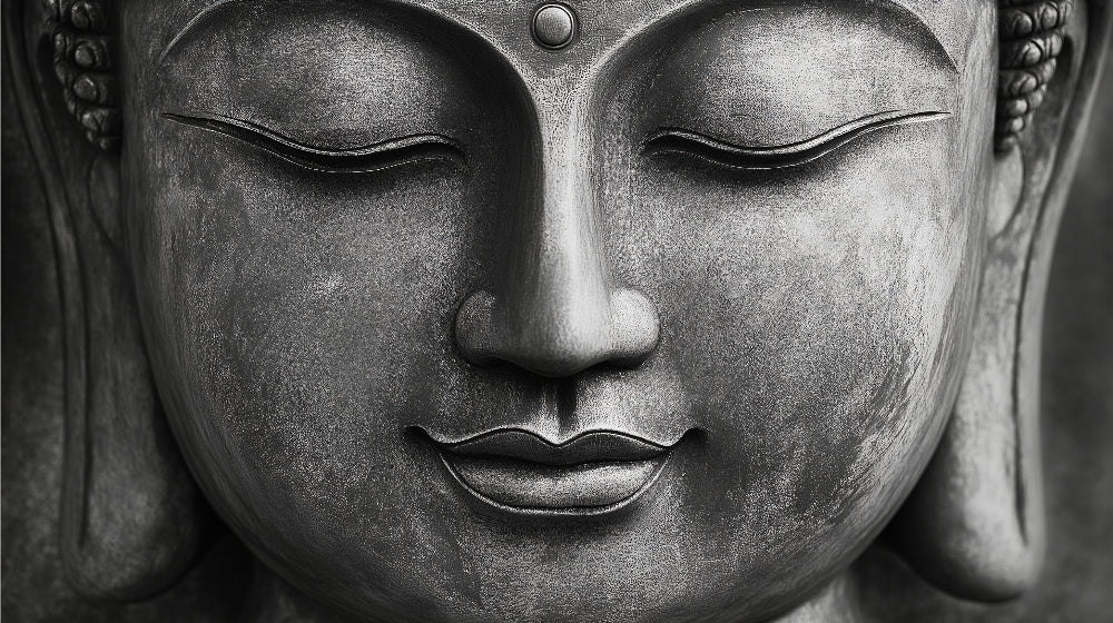 Dieses auffällige Buddha-Gesicht-Tapete zieht mit seiner meisterhaften monochromen Komposition alle Blicke auf sich. Der ruhige Ausdruck entsteht durch fachmännisch gestaltete Schatten und Highlights, die Tiefe und Dimension vor dem dramatischen schwarz-weißen Hintergrund schaffen. Jedes Detail, von der sanften Kurve der geschlossenen Augen bis zum subtilen Lächeln, trägt zur meditativen Präsenz des Zen-Wandbilds bei, während die strukturierte Oberfläche dem Design eine künstlerische Raffinesse verleiht.