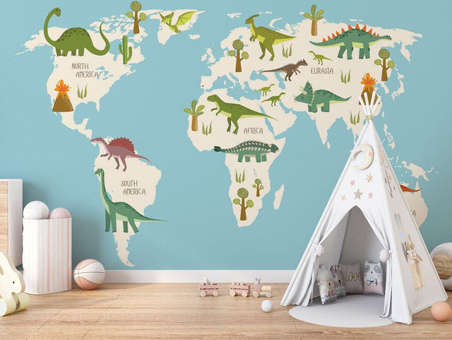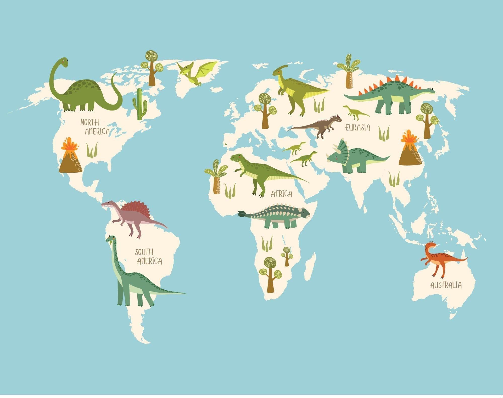 Dinosaurier Tapete | Pädagogische Weltkarten-Gestaltung