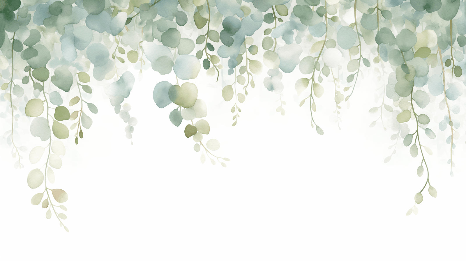 Diese Eukalyptusblatt-Tapete schafft ein bezauberndes Blätterdach aus sanftem, herabfallendem Laub in zarten Aquarelltönen. Die sanfte Mischung aus Salbeigrün und Minzblättern fließt anmutig vor einem makellosen weißen Hintergrund und erzeugt eine ruhige botanische Komposition. Jedes Element der Aquarell-Laubtapete ist kunstvoll mit durchscheinenden Lasuren gestaltet, die die ätherische Qualität des Morgenlichts einfangen, das durch die Blätter fällt.