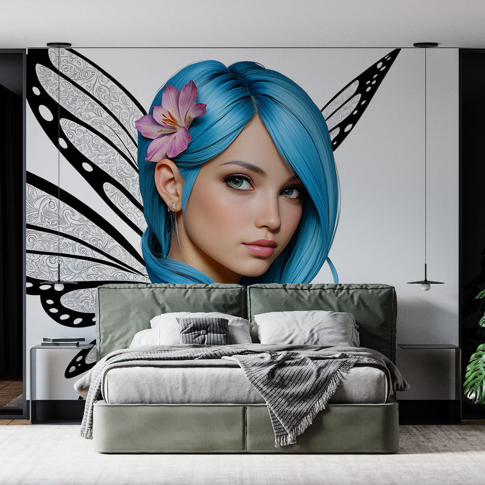 Fantasie Tapete | Blaue Fee mit Schmetterlingsflügeln