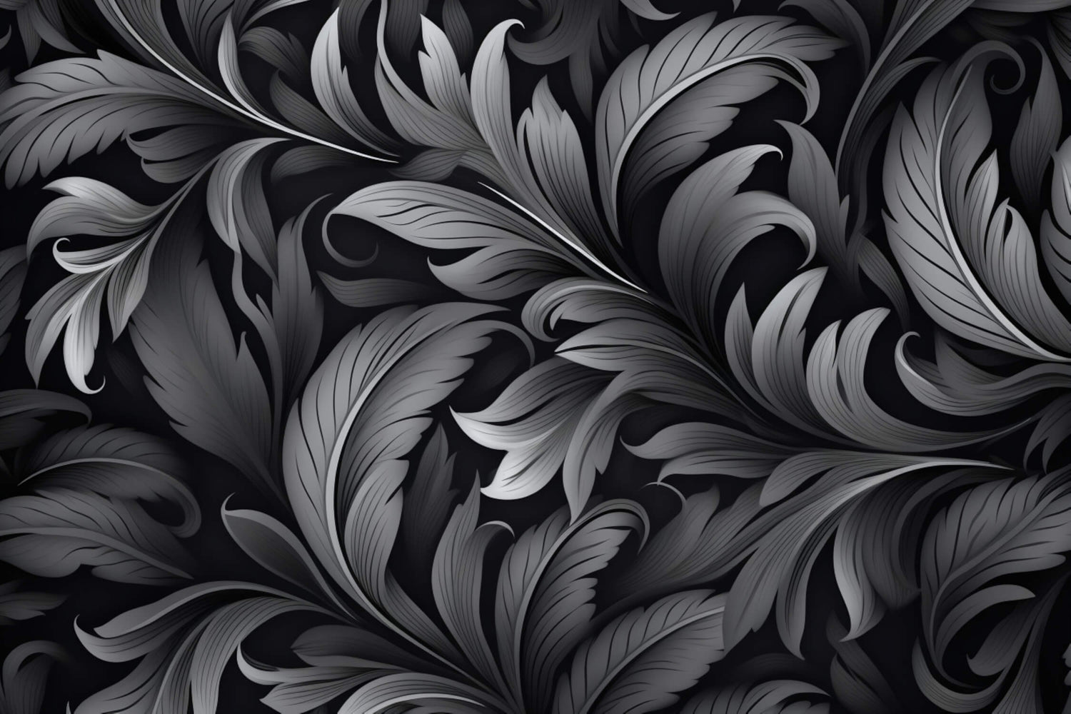 Feder Tapete | Schwarzes und graues Jugendstil-Design
