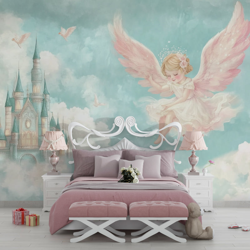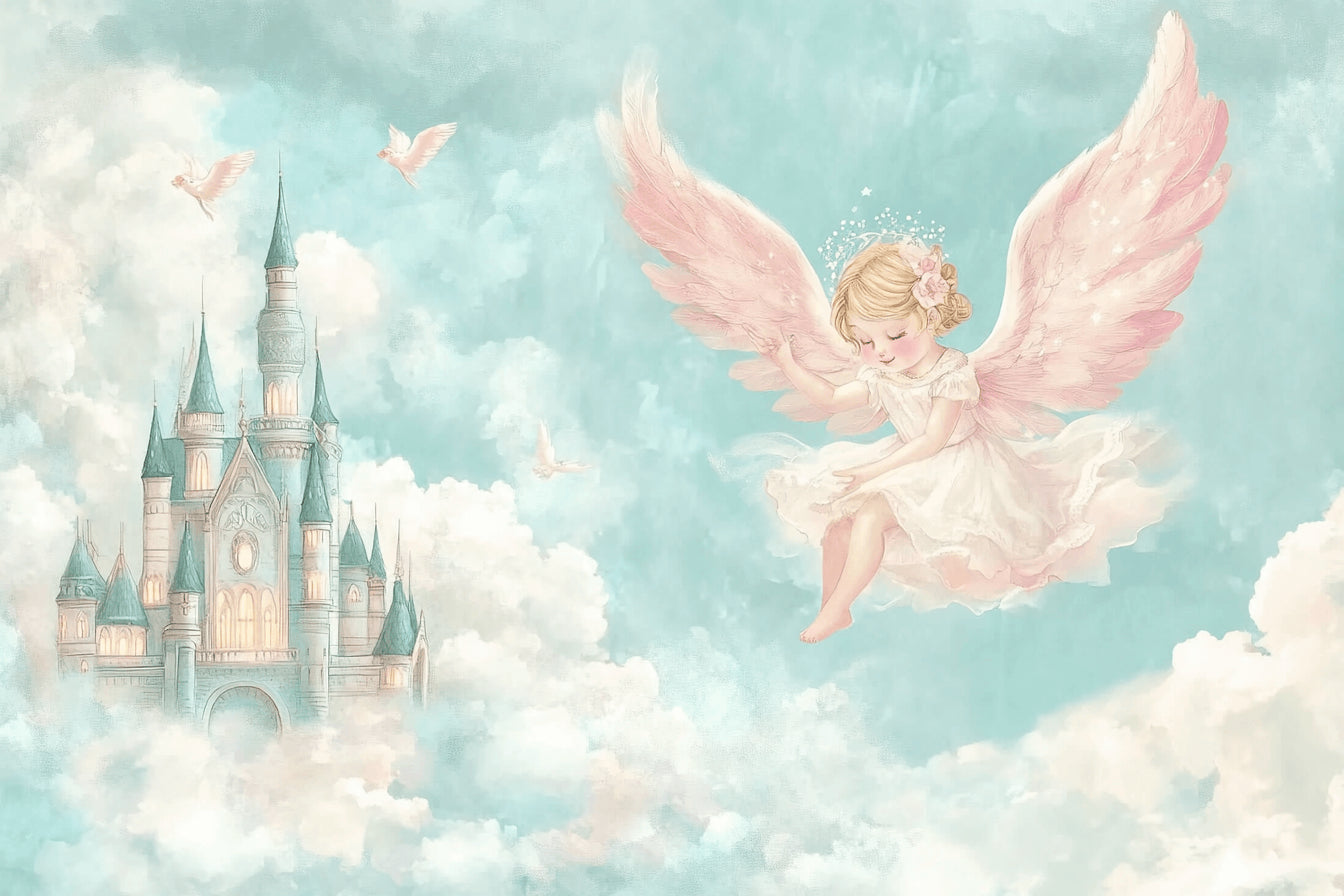 Verwandeln Sie jeden Raum in ein magisches Heiligtum mit dieser Engel-Kinderzimmer-Tapete. Die verträumte Atmosphäre und die sanfte Farbpalette machen sie perfekt, um eine förderliche Umgebung zu schaffen, die Fantasie und Staunen weckt. Diese Märchen-Wandmalerei bringt einen Hauch von Verspieltheit und Anmut in Räume und bietet eine magische Flucht, die mit Ihrem Kind wächst und dabei ihren zeitlosen Charme bewahrt.