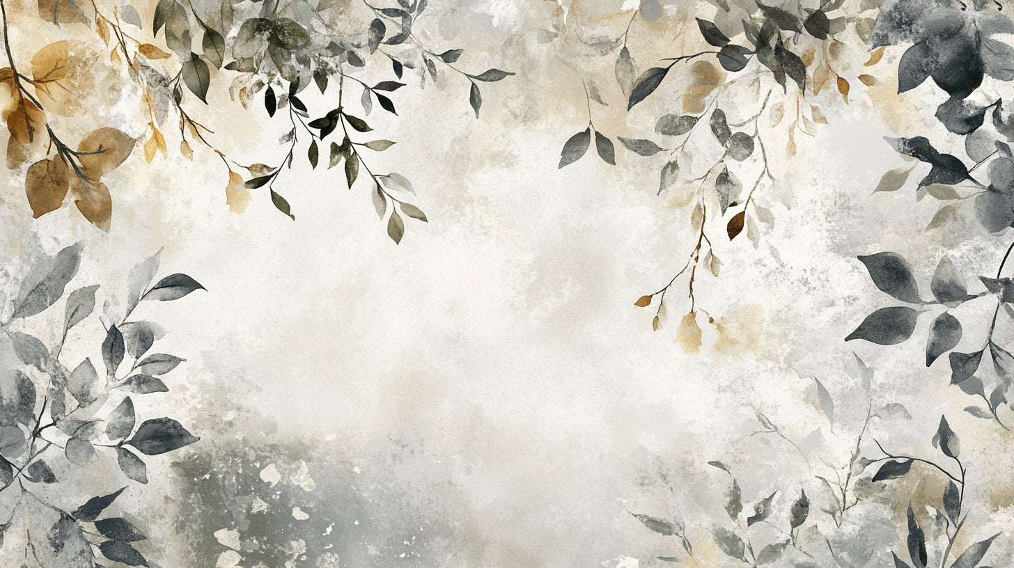 Diese Aquarell-Blatt-Tapete zeigt eine elegante Anordnung zarter Blätter in anspruchsvollen neutralen Tönen. Anmutige Zweige, geschmückt mit salbeigrünen und kohlefarbenen Blättern, fallen von oben herab, während subtile goldene Akzente dem nebligen beigen Hintergrund Wärme verleihen. Das botanische Wandbild schafft eine sanft strukturierte, atmosphärische Szene, die künstlerische Raffinesse in jeden Innenraum bringt.