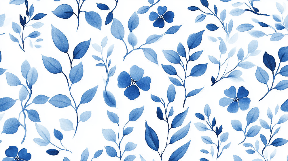 Das blaue botanische Muster verleiht sofort Charme, ohne Ihren Raum zu überladen.