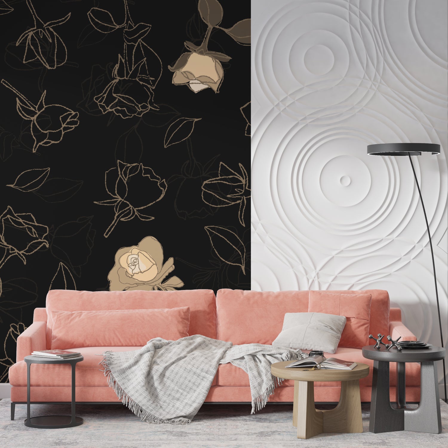 Das schwarze Rosenmuster verleiht Tiefe, ohne zu aufdringlich zu sein.