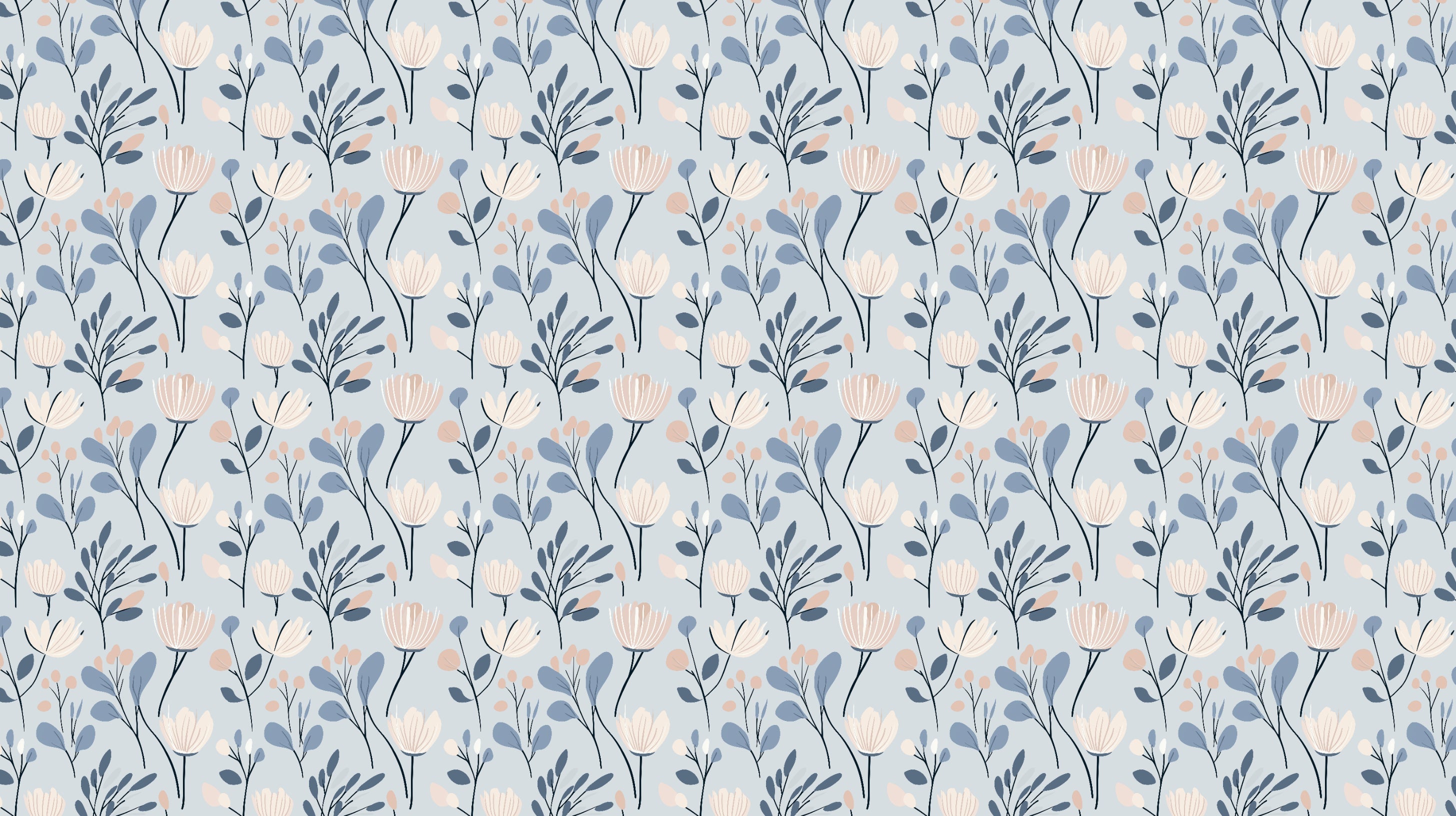 Blumen-Tapete | Skandinavische blaue und rosa Blüten